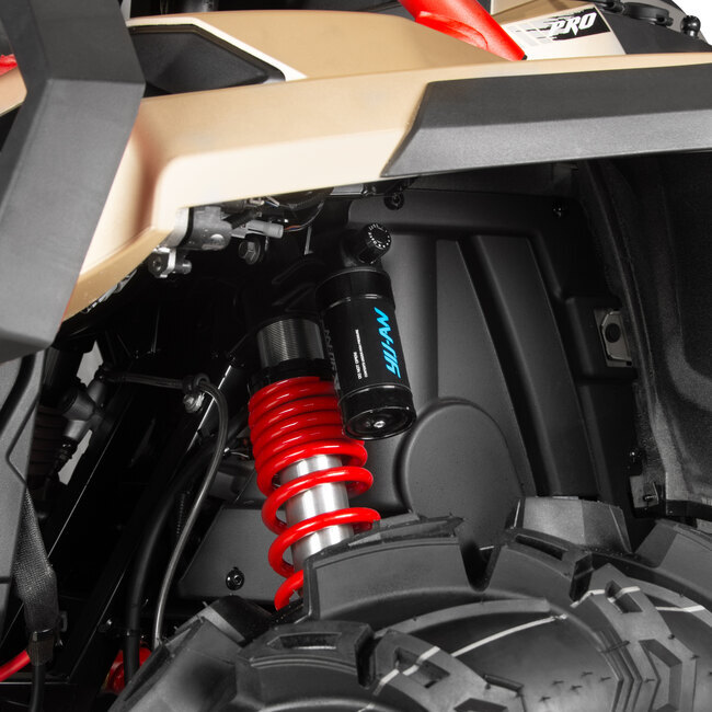 В двухместном квадроцикле PATHCROSS MUD PRO с двигателем 976 см³ и выносным радиатором, новый дизайн передней части, обновленная оптика, LCD приборная панель, электронный ключ зажигания, лебедка нового образца с беспроводным контролером, амортизаторы YUAN с регулировками, новая 10-дюймовая световая балка, новый замок заднего багажного отсека, усиленная задняя багажная площадка, новый рычаг переключения передач.